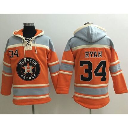Astros #34 Nolan Ryan Orange Sawyer Hooded Sweatshirt MLB Hoodie