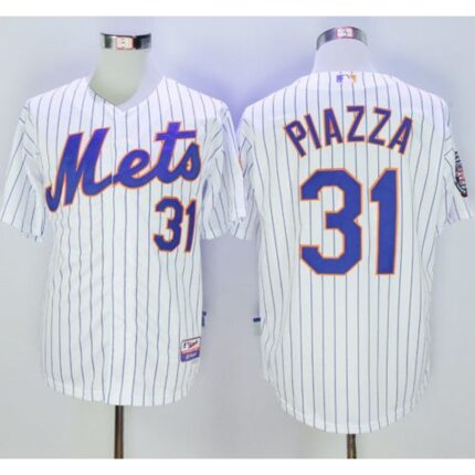 Mets #31 Mike Piazza White(Blue Strip) Home Cool Base Stitched MLB Jersey