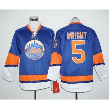Mets #5 David Wright Blue Long Sleeve Stitched MLB Jersey