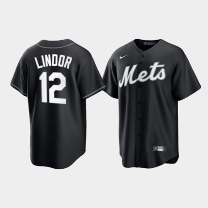 Men’s New York Mets #12 Francisco Lindor Black Cool Base Stitched Baseball Jersey