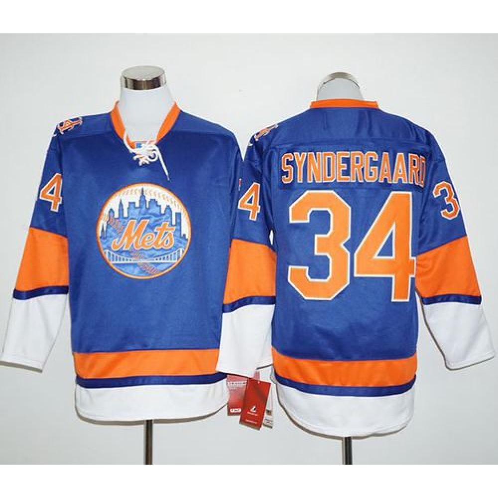 Mets #34 Noah Syndergaard Blue Long Sleeve Stitched MLB Jersey